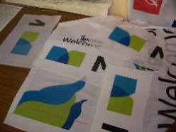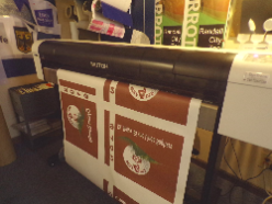 The actual process involves printing a digital file on special paper, using our large format printers, and then heat transfering the images and copy to fabric using a large rotary heat press or other manual heat-presses.