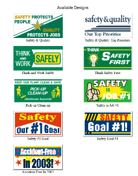 These quality printed banners are printed single-side (no back lining) with double-needle stitched hems and brass grommets along top and botton corners. Our safety banners are 30" high x 60" wide. The banners will brighten and enhance your venue and presentation.